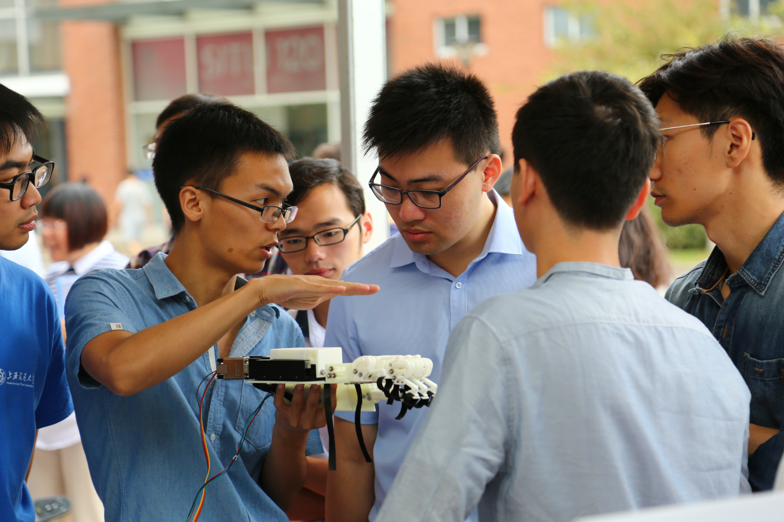 本次项目式实践课程竞赛,恰逢全国“大众创业、万众创新”双创活动周,课程竞赛中的部分获奖作品智能图书整理小车、手指康复机器人、智能导盲机器人、自跟随智能小车,应邀在2017年全国大众创业万众创新活动周“上海交大-闵行”专场活动中展示,我院专业学位研究生学子的创新实践设计理念及作品吸引了社会各界的广泛关注。