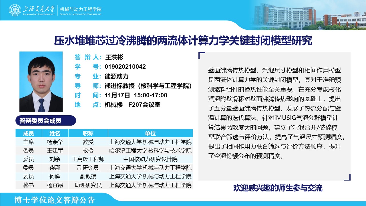 答辩人:王洪彬| 导师:熊进标 | 时间:11月17日 15:00 – 17:00 | 地点:机械楼 F207会议室