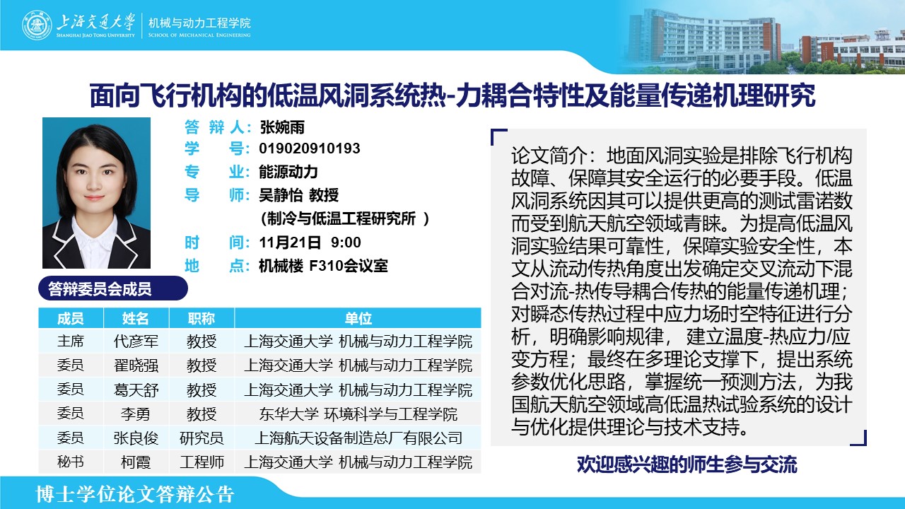 答辩人:张婉雨| 导师:吴静怡 | 时间:11月21日 9:00 | 地点:机械楼 F310会议室