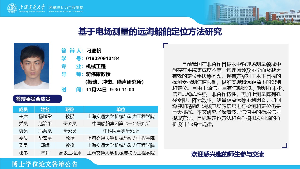 答辩人:刁逸帆| 导师:蒋伟康 | 时间:11月24日 9:30 – 11:00