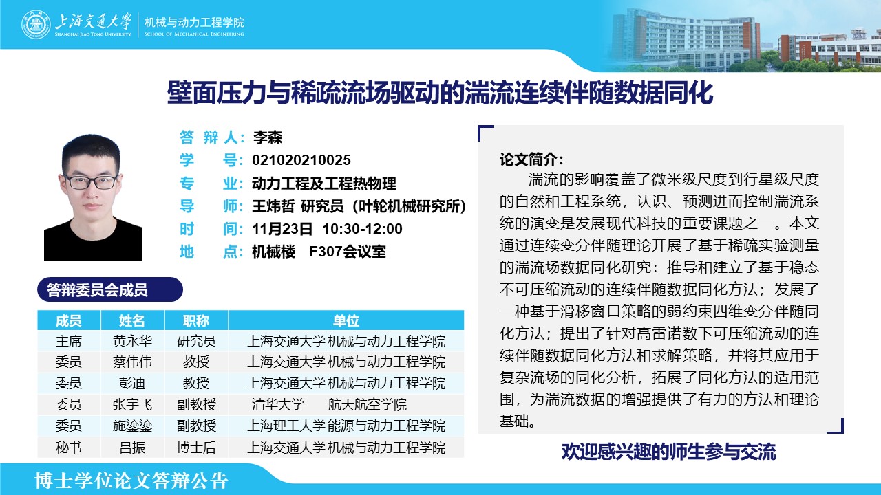 答辩人:李森| 导师:王炜哲 | 时间:11月23日 10:30 – 12:00 | 地点:机械楼 F307会议室