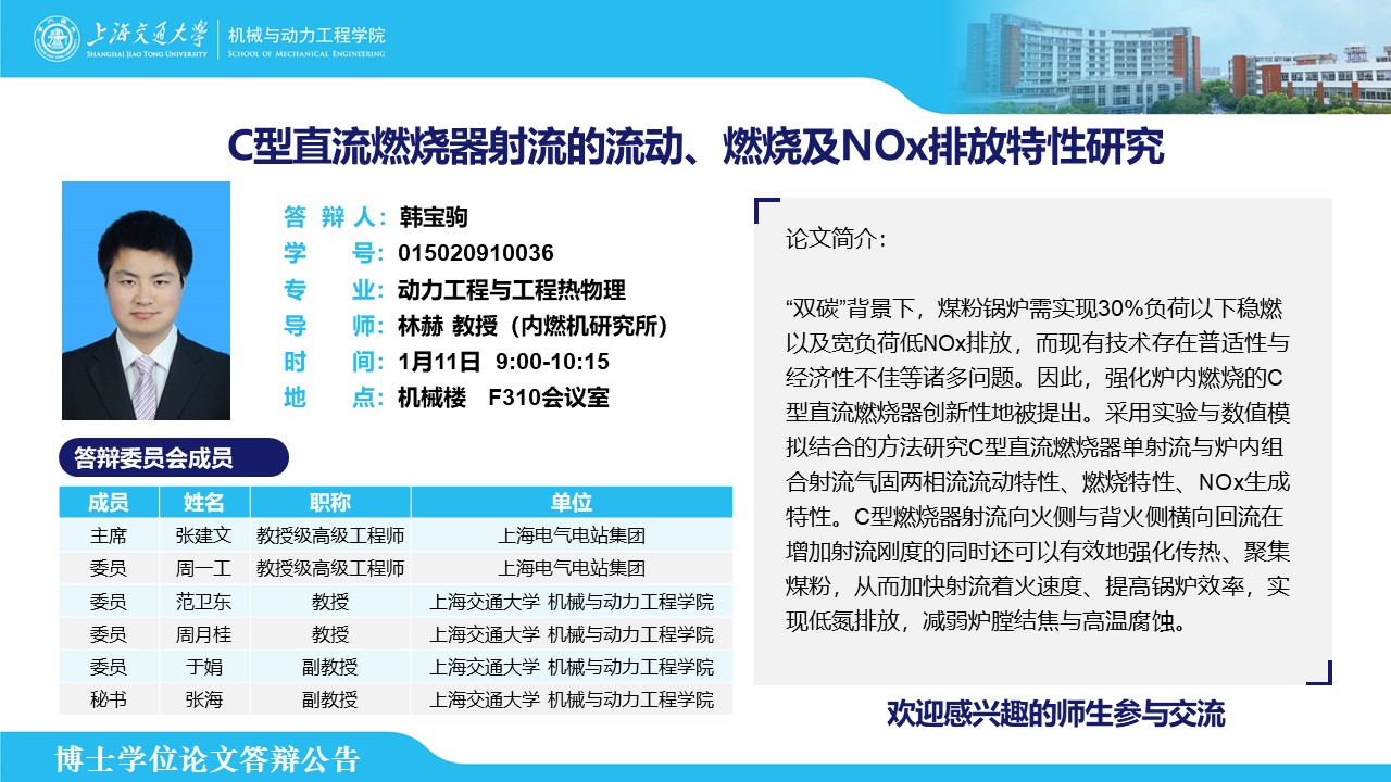 答辩人:韩宝驹| 导师:林赫 | 时间:1月11日 9:00 – 10:15 | 地点:机械楼 F310会议室