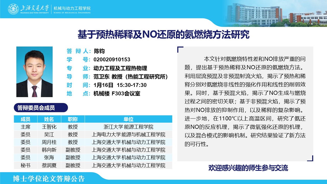 答辩人:陈钧| 导师:范卫东 | 时间:1月16日 15:30 – 17:30 | 地点:机械楼 F303会议室