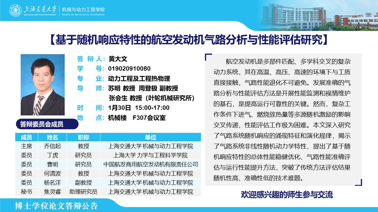 答辩人:黄大文 | 导师:苏明、周登极、张会生 | 时间:1月30日 15:00-17:00 | 地点:机械楼 F307会议室