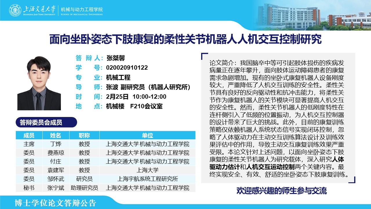 答辩人:张桀馨 | 导师:张波 | 时间:2月25日 10:00-12:00 | 地点:机械楼 F210会议室