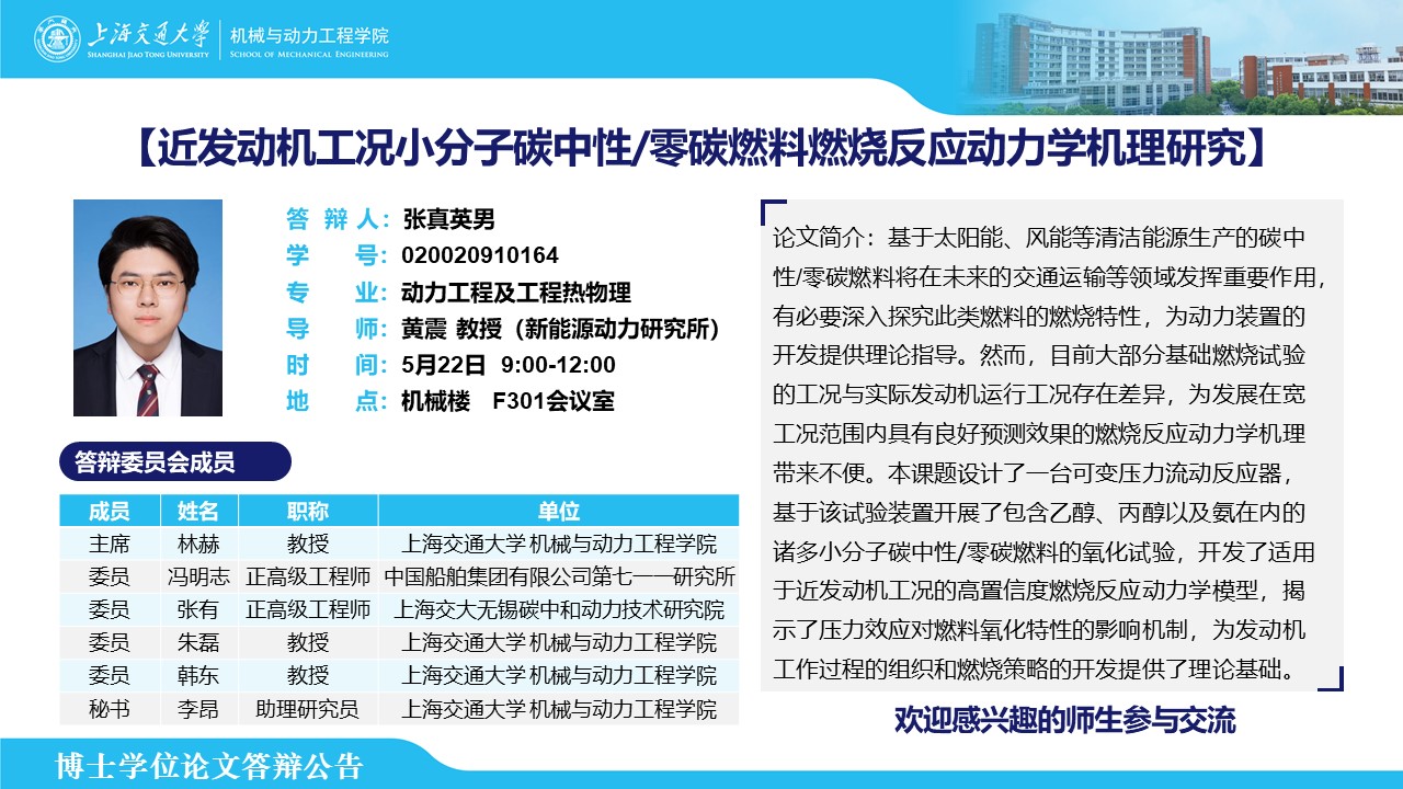 答辩人:张真英男 | 导师:黄震 | 时间:5月22日 9:00-12:00 | 地点:机械楼 F301会议室