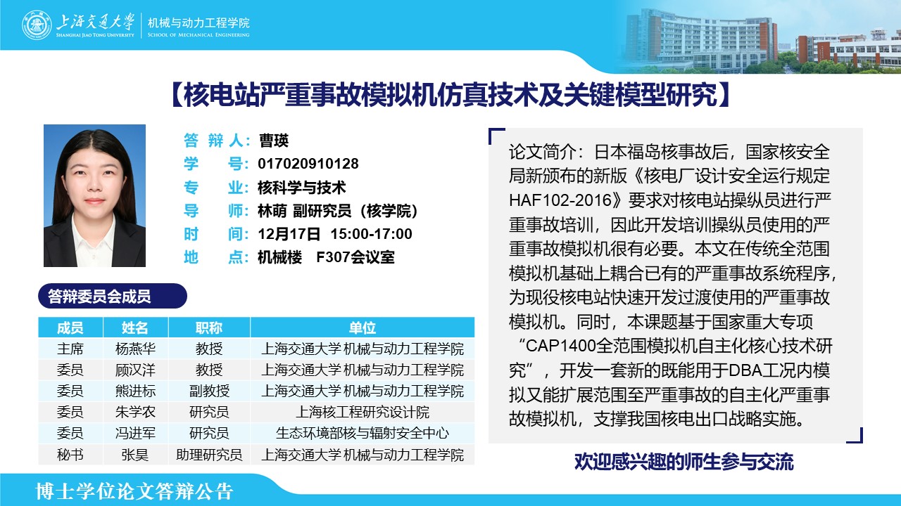 答辩人:曹瑛 | 导师:林萌 | 时间:12月17日 15:00-17:00 | 地点:机械楼F307会议室