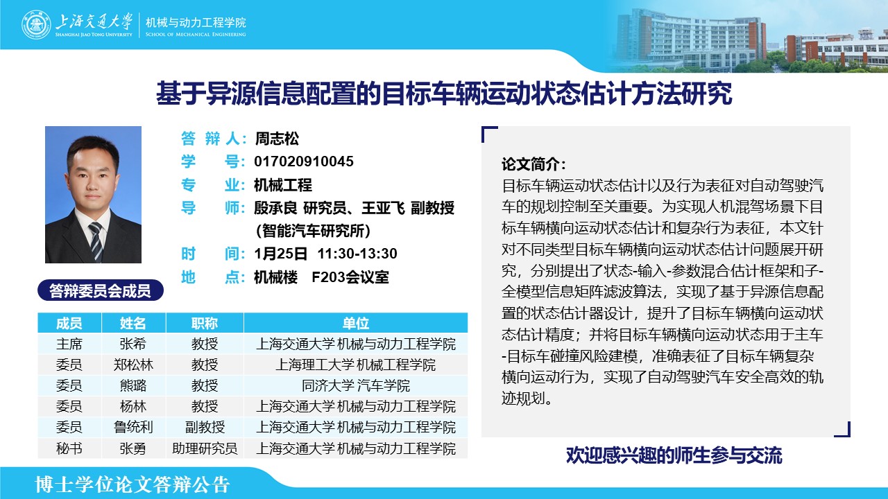 答辩人:周志松 | 导师:殷承良 王亚飞 | 时间:1月25日 11:30-13:30 | 地点:机械楼 F203会议室