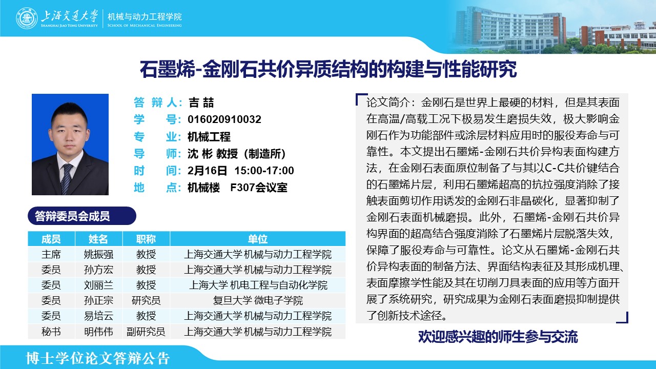 答辩人:吉喆| 导师:沈彬 | 时间:2月16日 15:00-17:00 | 地点:机械楼 F307会议室