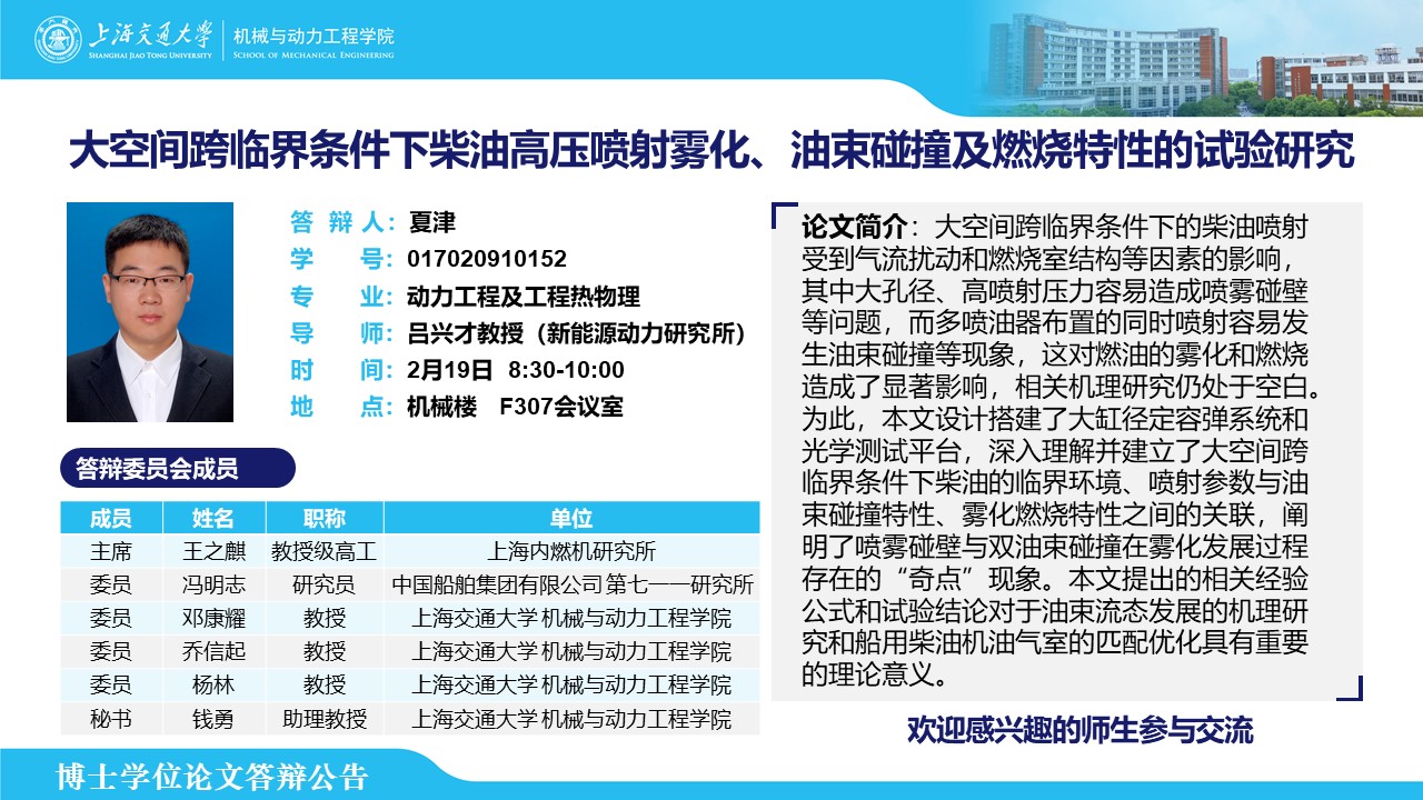 答辩人:夏津| 导师:吕兴才 | 时间:2月19日 8:30-10:00 | 地点:机械楼 F307会议室