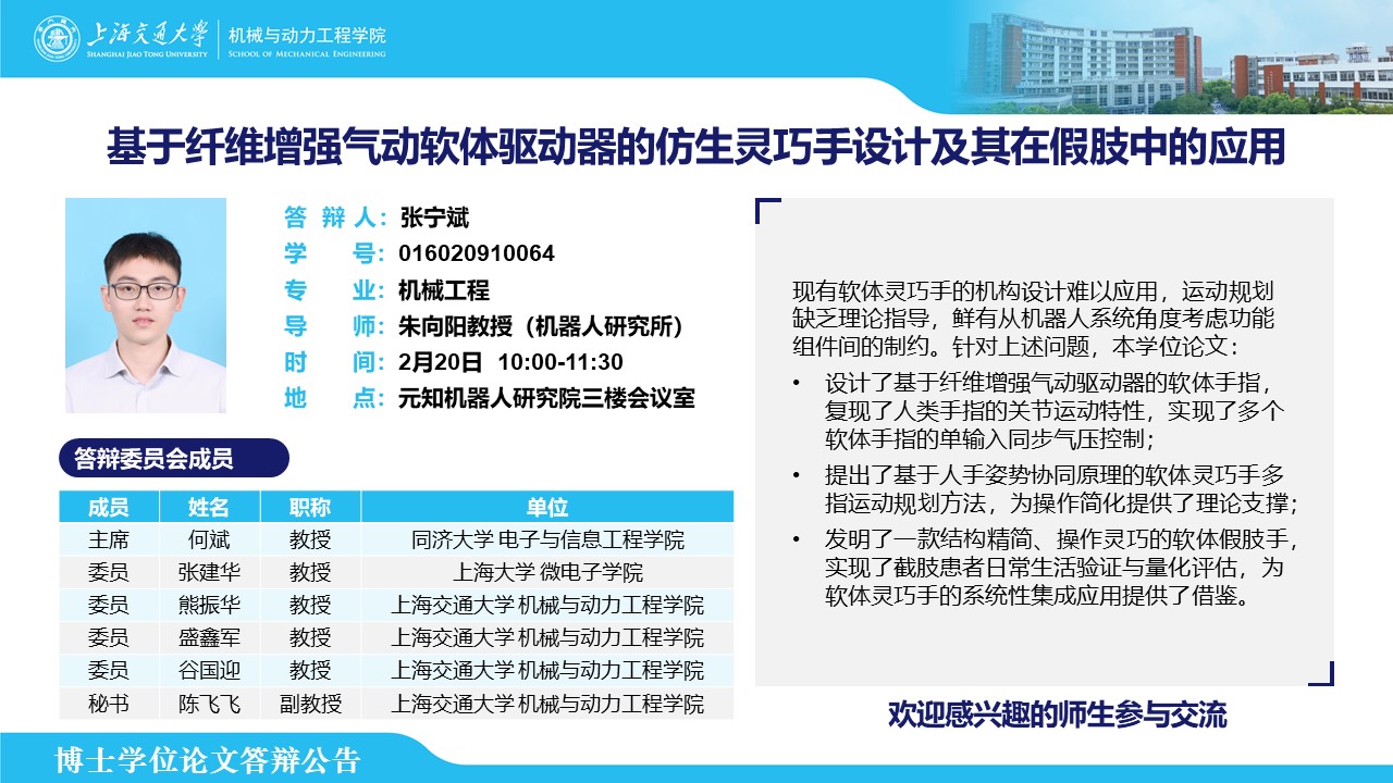 答辩人:张宁斌| 导师:朱向阳 | 时间:2月20日 10:00-11:30 | 地点:元知机器人研究院三楼会议室