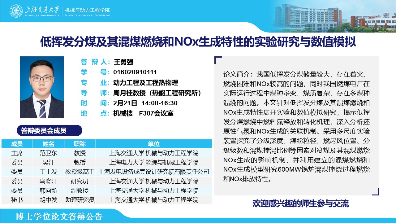 答辩人:王勇强| 导师:周月桂 | 时间:2月21日 14:00-16:30 | 地点:机械楼 F307会议室