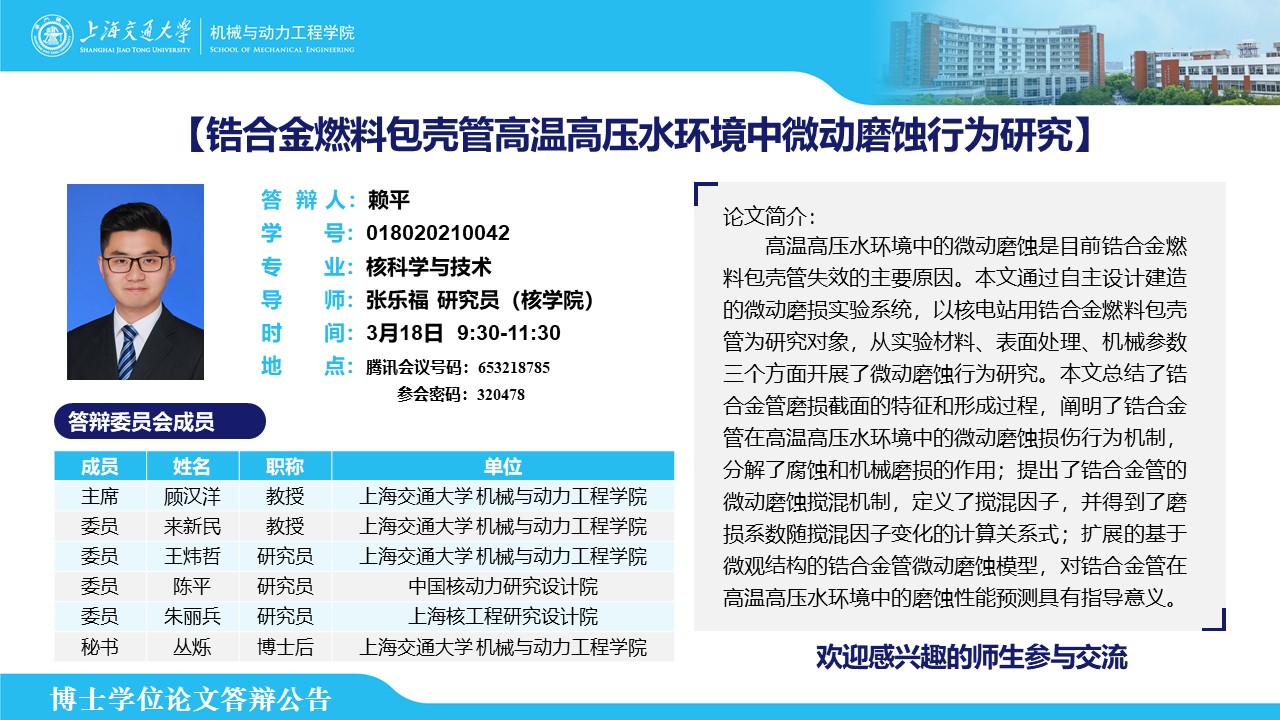 答辩人:赖平 | 导师:张乐福 | 时间:3月18日 9:30-11:30 | 腾讯会议号码:653218785 参会密码:320478