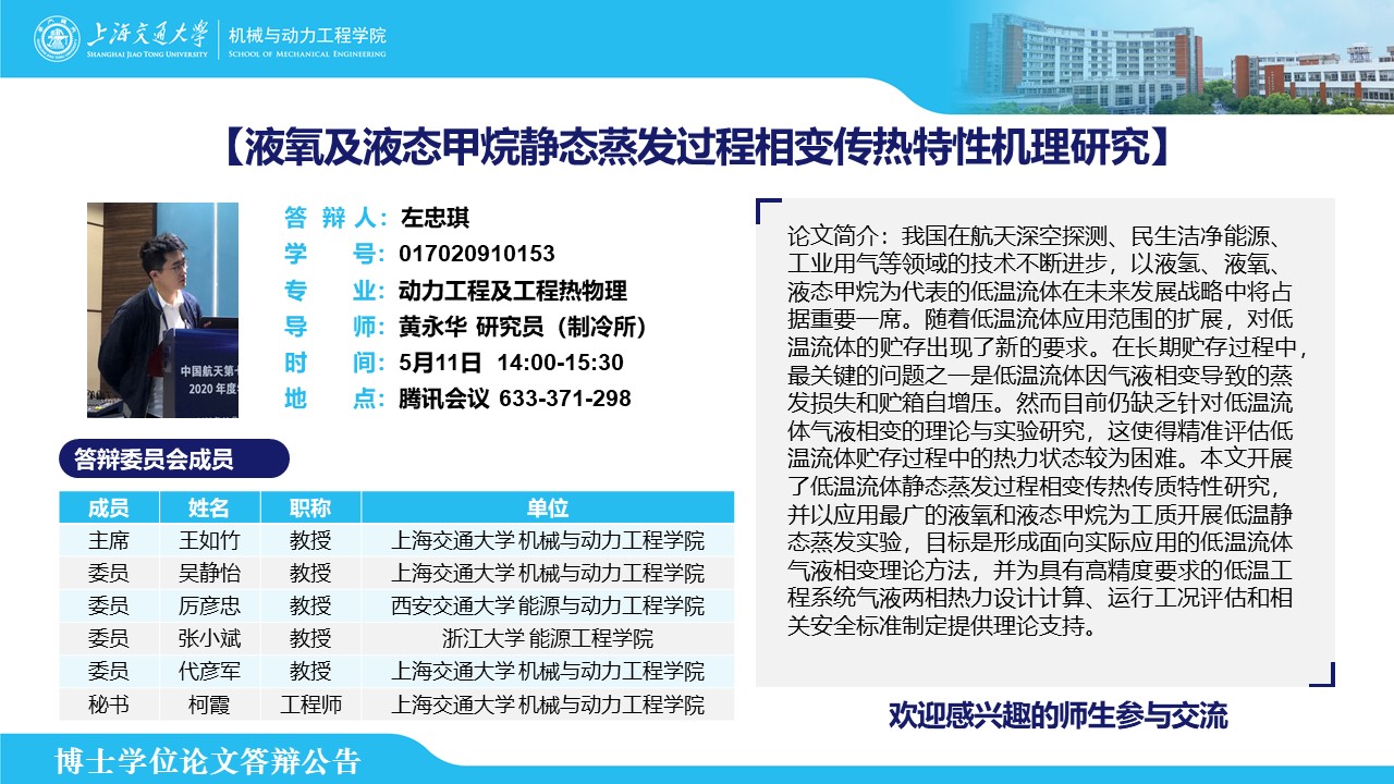 答辩人:左忠琪 | 导师:黄永华 | 时间:5月11日 14:00-15:30 | 腾讯会议号码:633371298