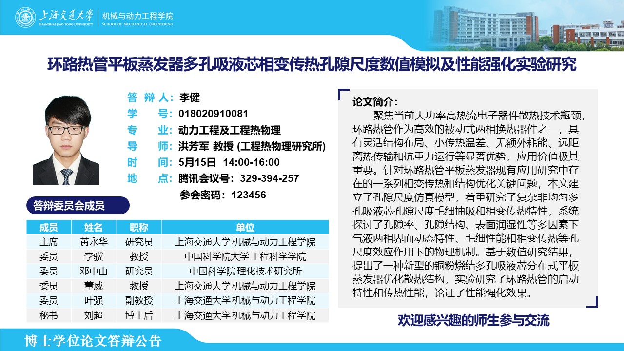 答辩人:李健 | 导师:洪芳军 | 时间:5月15日 14:00-16:00 | 腾讯会议号码:329394257 参会密码:123456