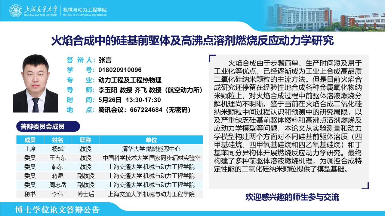 答辩人:张言 | 导师:李玉阳 齐飞 | 时间:5月26日 13:30-17:30 | 腾讯会议号码:667224684
