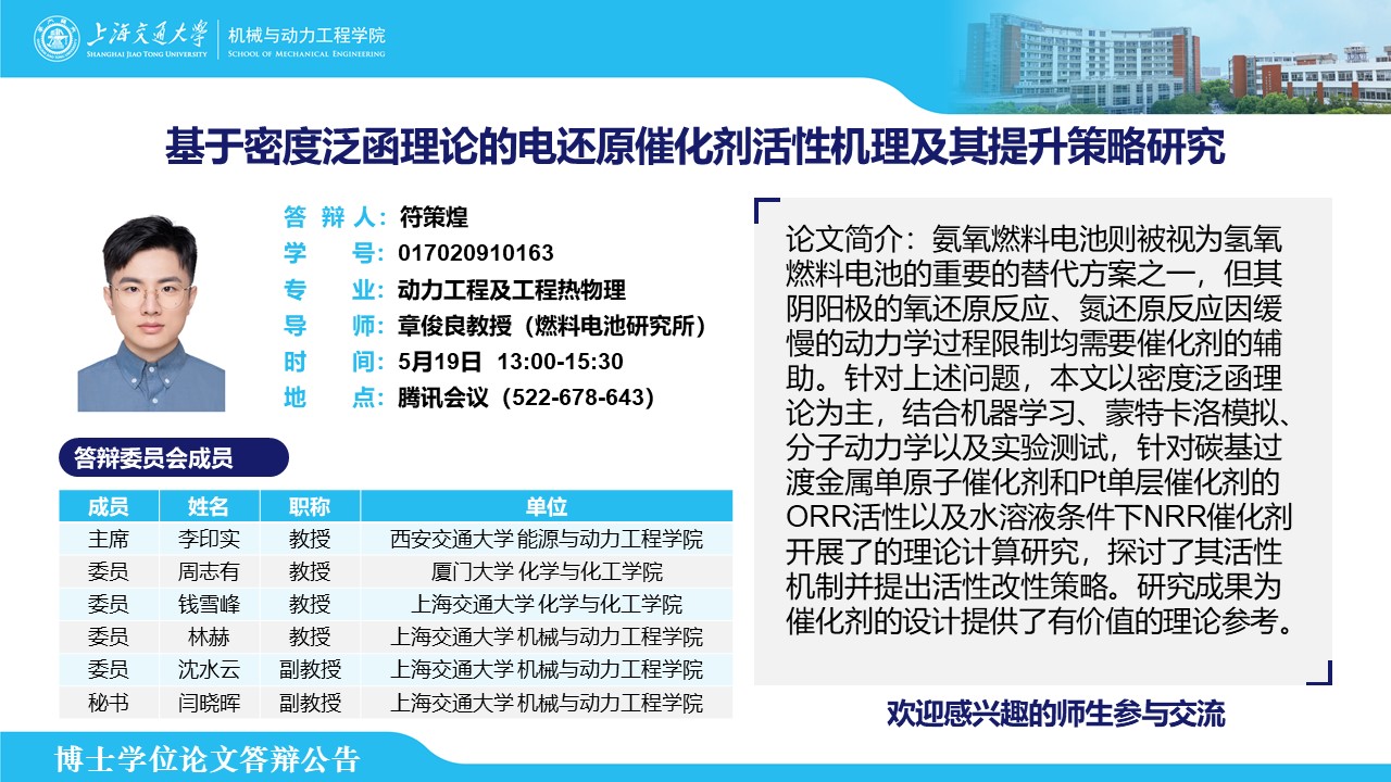 答辩人:符策煌 | 导师:章俊良 | 时间:5月19日 13:00-15:30 | 腾讯会议号码:522678643