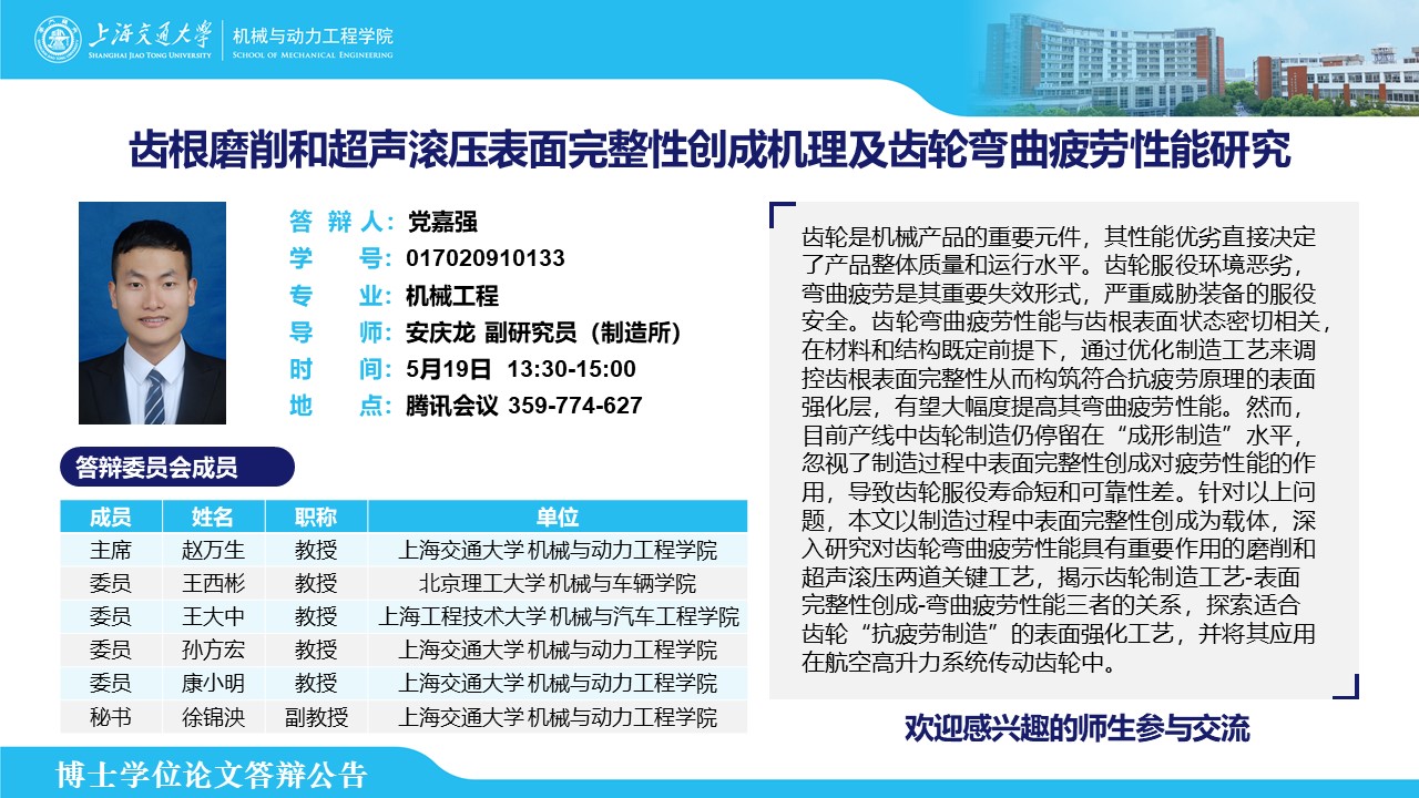 答辩人:党嘉强 | 导师:安庆龙 | 时间:5月19日 13:30-15:00 | 腾讯会议号码:359774627