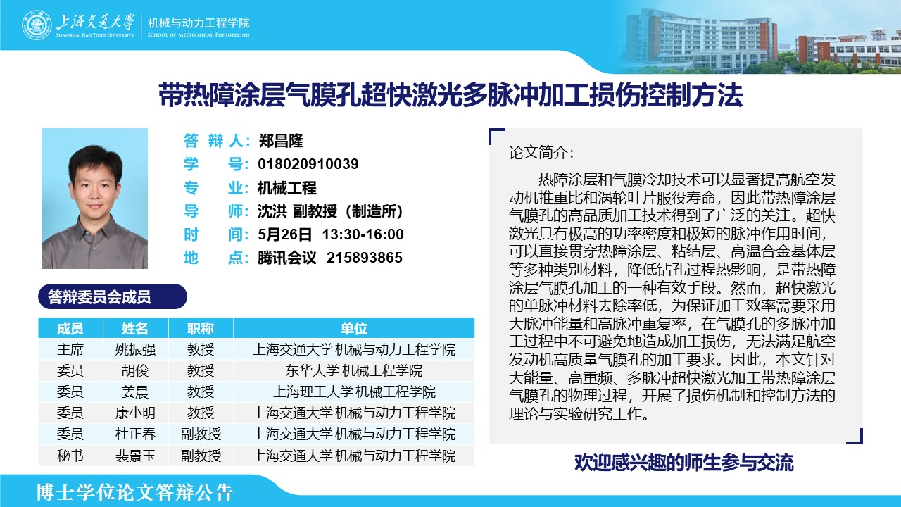 答辩人:郑昌隆 | 导师:沈洪 | 时间:5月26日 13:30-16:00 | 腾讯会议号码:215893865