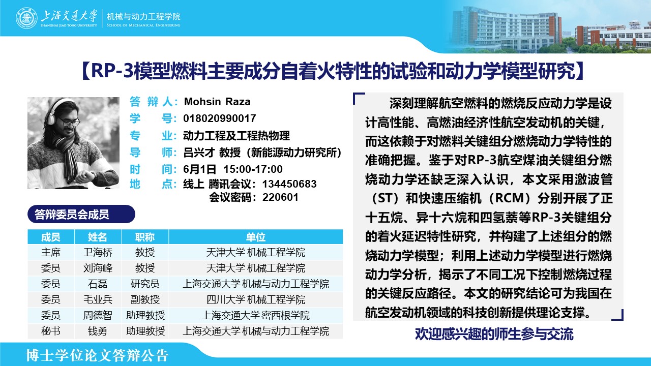 答辩人:Mohsin Raza | 导师:吕兴才 | 时间:6月1日 15:00-17:00 | 腾讯会议号码:134450683 参会密码:220601