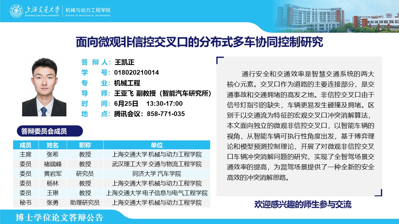 答辩人:王凯正 | 导师:王亚飞 | 时间:6月25日 13:30-17:00 | 腾讯会议号码:858771035