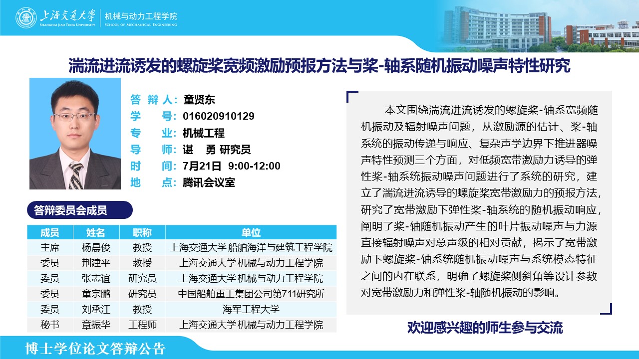 答辩人:童贤东 | 导师:谌勇 | 时间:7月21日 9:00-12:00 | 腾讯会议室