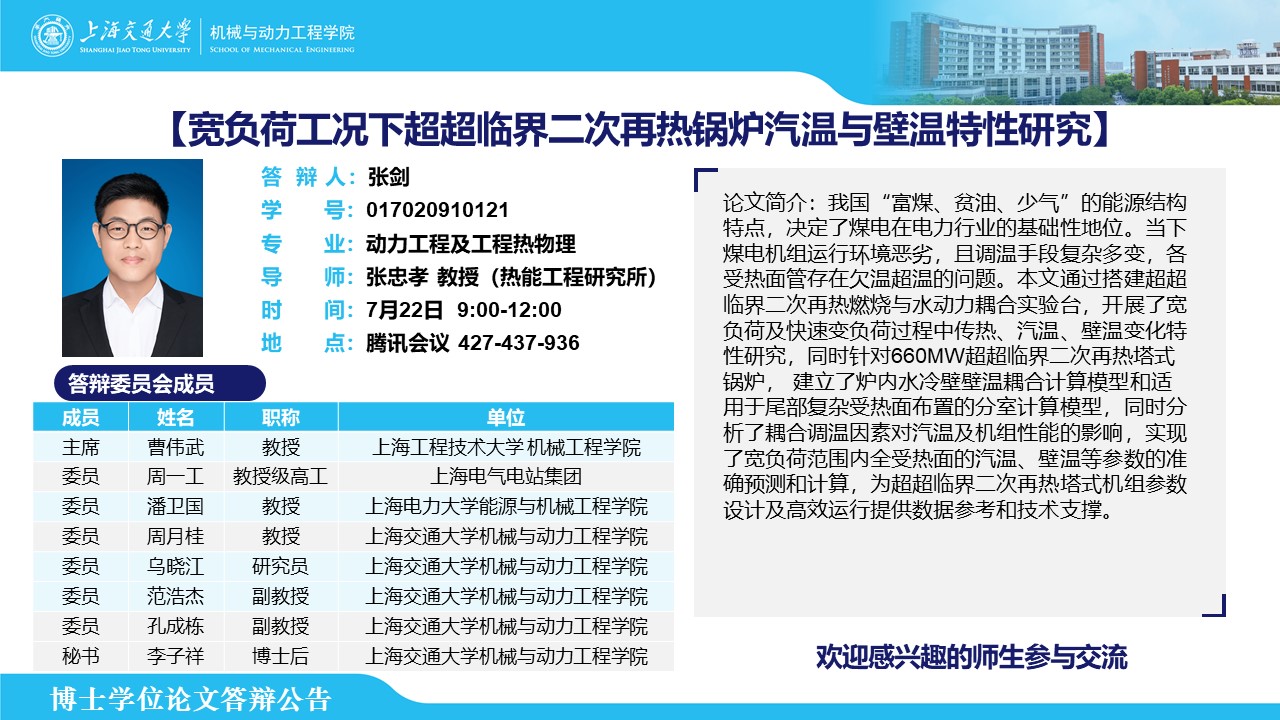 答辩人:张剑 | 导师:张忠孝 | 时间:7月22日 9:00-12:00 | 腾讯会议会议号:427437936