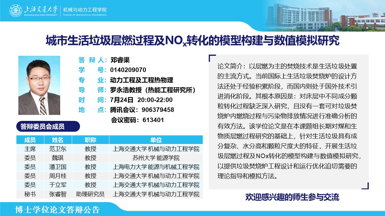 答辩人:邓睿渠 | 导师:罗永浩 | 时间:7月24日 20:00-22:00 | 腾讯会议会议号:906379458 密码:613401