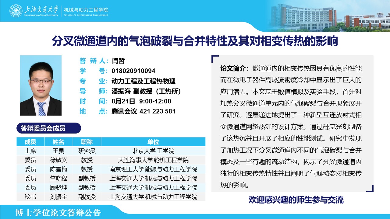 答辩人:闫哲 | 导师:潘振海 | 时间:8月21日 9:00-12:00 | 腾讯会议会议号:421223581