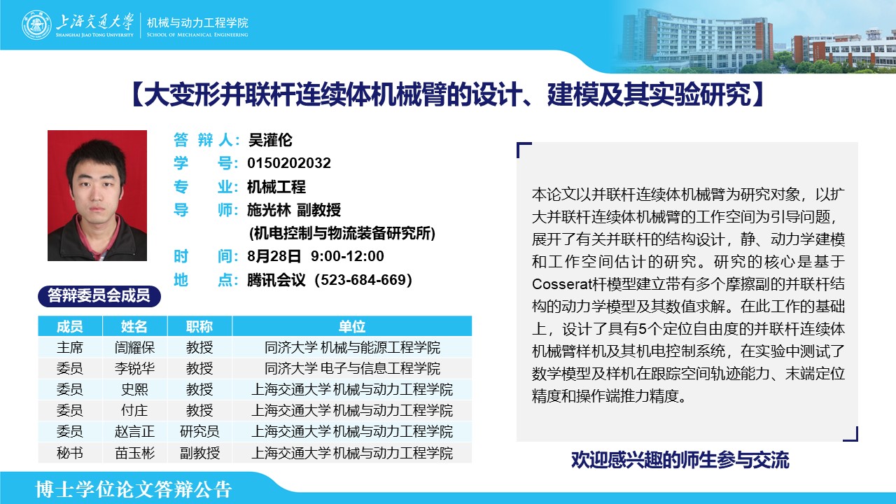 答辩人:吴灌伦 | 导师:施光林 | 时间:8月28日 9:00-12:00 | 腾讯会议会议号:523684669