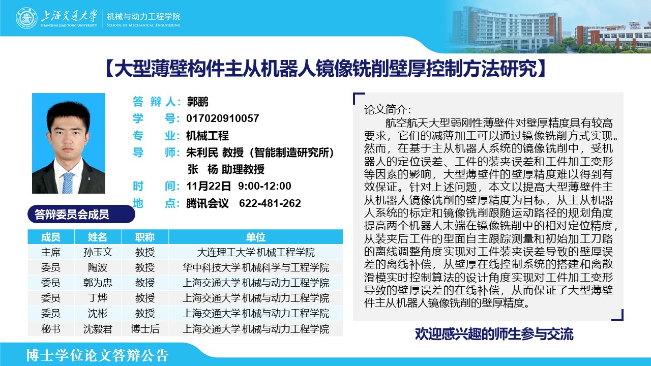 答辩人:郭鹏| 导师:朱利民、张杨 | 时间:11月22日 9:00 – 12:00 | 腾讯会议会议号:622481262