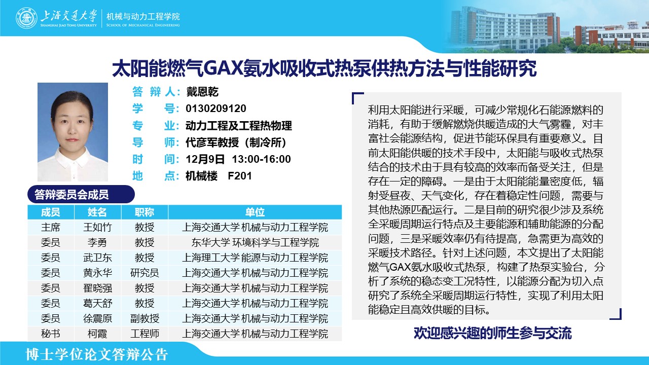 答辩人:戴恩乾 | 导师:代彦军| 时间:12月9日 13:00 – 16:00 | 地点:机械楼 F201