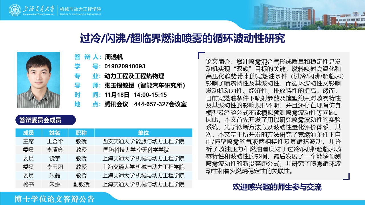 答辩人:周逸帆 | 导师:张玉银 | 时间:11月18日 14:00 – 15:15 | 腾讯会议会议号:444657327