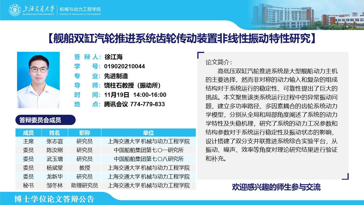 答辩人:徐江海 | 导师:饶柱石 | 时间:11月19日 14:00 – 16:00 | 腾讯会议会议号:774779833