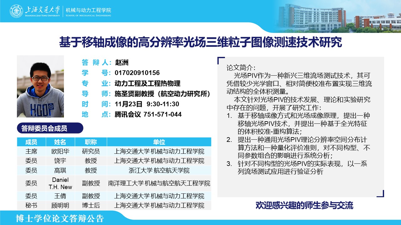 答辩人:赵洲 | 导师:施圣贤 | 时间:11月23日 9:30 – 11:30 | 腾讯会议会议号:751571044