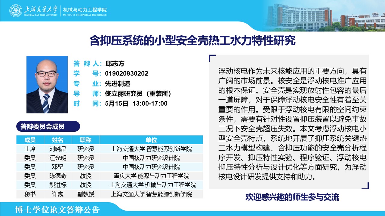 答辩人:邱志方| 导师:佟立丽 | 时间:5月15日 13:00 – 17:00