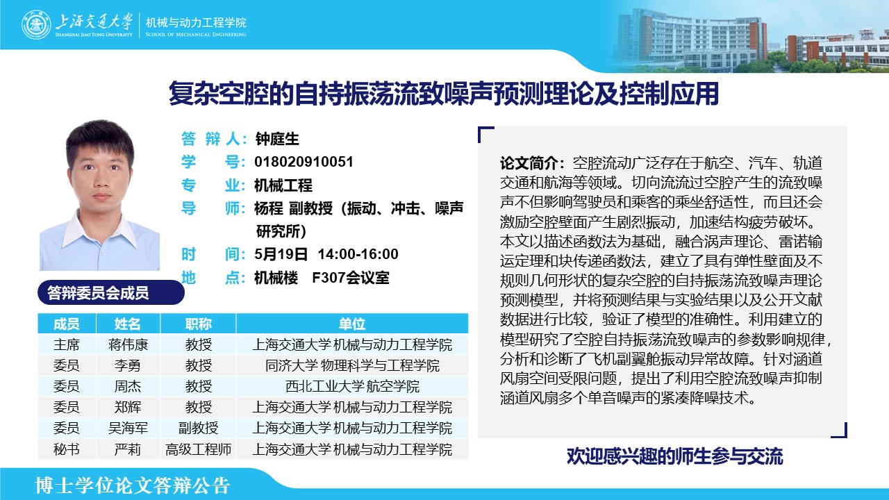 答辩人:钟庭生| 导师:杨程 | 时间:5月19日 14:00 – 16:00 | 地点:机械楼 F307会议室