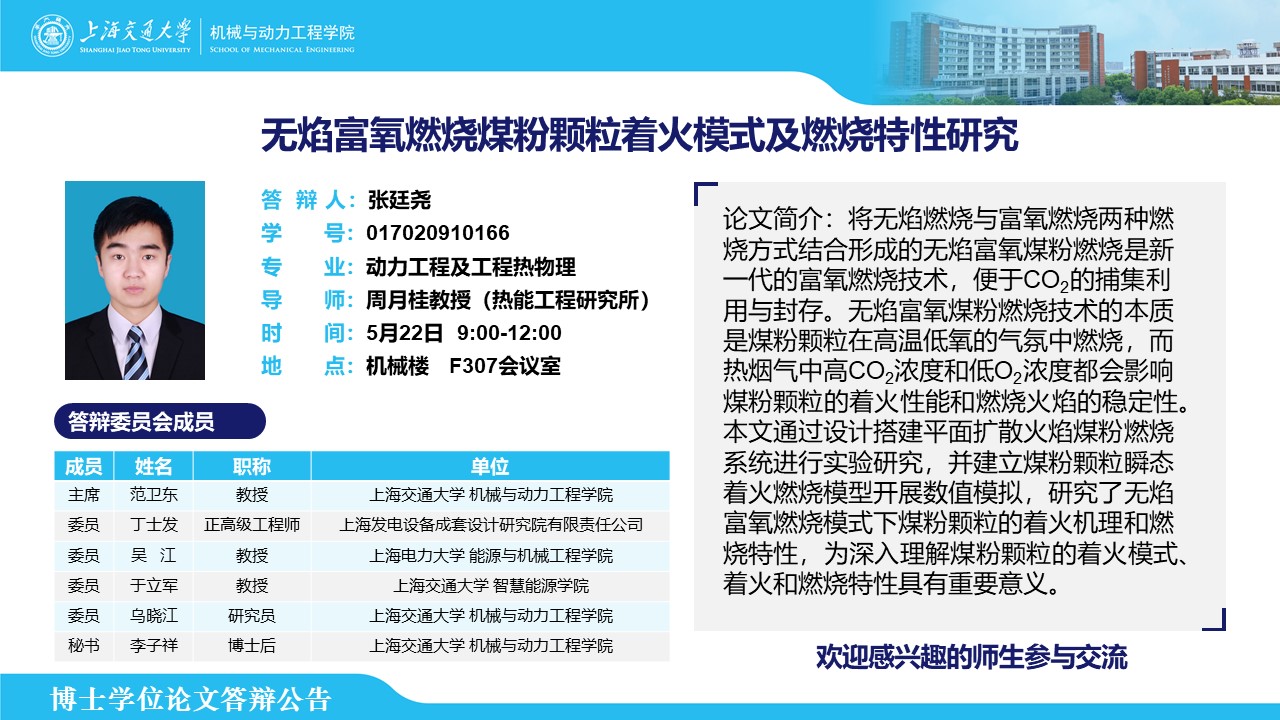答辩人:张廷尧| 导师:周月桂 | 时间:5月22日 9:00 – 12:00 | 地点:机械楼 F307会议室