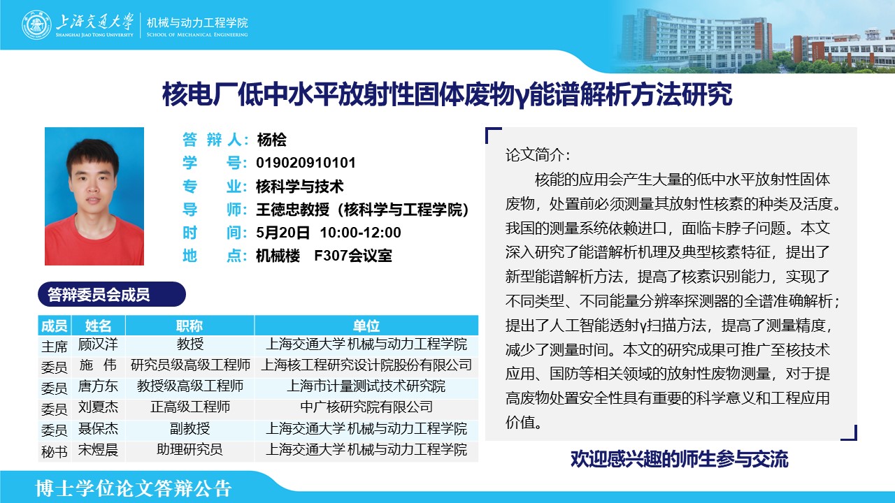 答辩人:杨桧| 导师:王徳忠 | 时间:5月20日 10:00 – 12:00 | 地点:机械楼 F307会议室