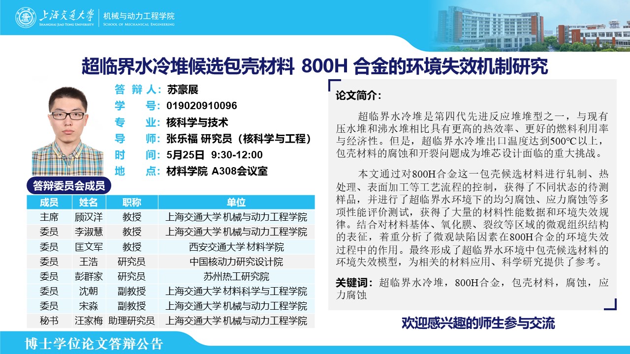 答辩人:苏豪展 | 导师:张乐福 | 时间:5月25日 9:30 – 12:00 | 地点:材料学院 A308会议室