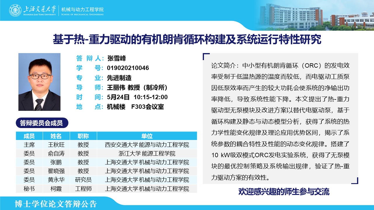 答辩人:张雪峰| 导师:王丽伟 | 时间:5月24日 10:15 – 12:00 | 地点:机械楼 F303会议室