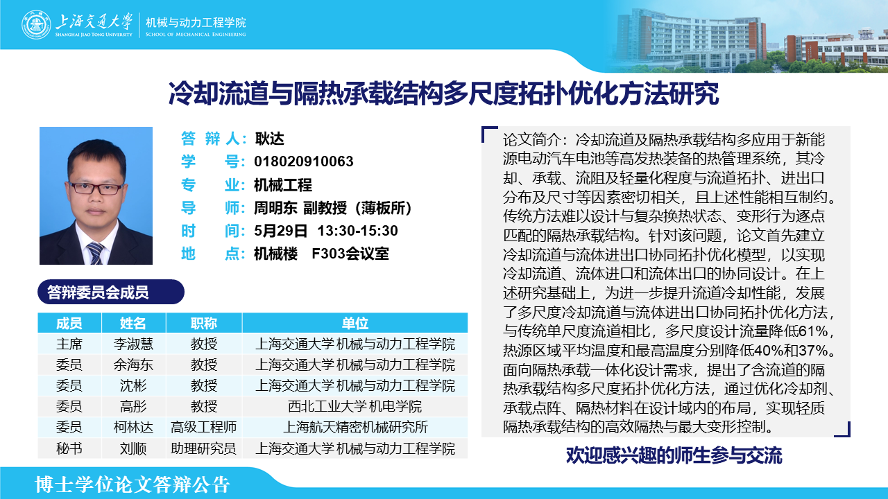 答辩人:耿达| 导师:周明东 | 时间:5月29日 13:30 – 15:30 | 地点:机械楼 F303会议室
