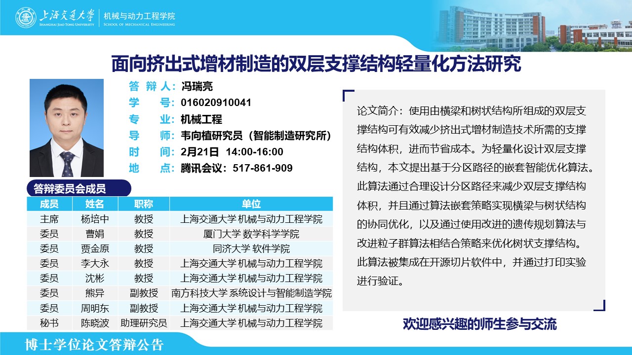 答辩人:冯瑞亮 | 导师:韦向植| 时间:2月21日 14:00-16:00 |腾讯会议会议号:517861909