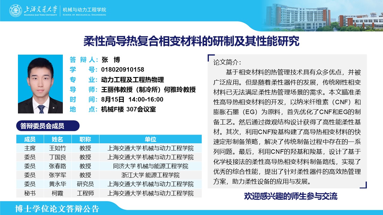 答辩人:张博| 导师:王丽伟、何雅玲 | 时间:8月15日 14:00 – 16:00 | 地点:机械F楼 307会议室