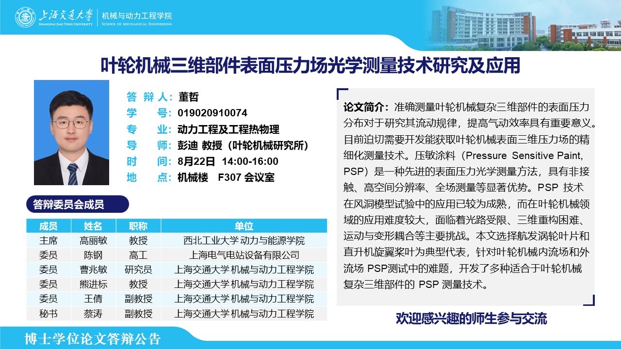 答辩人:董哲| 导师:彭迪 | 时间:8月22日 14:00 – 16:00 | 地点:机械楼 F307会议室