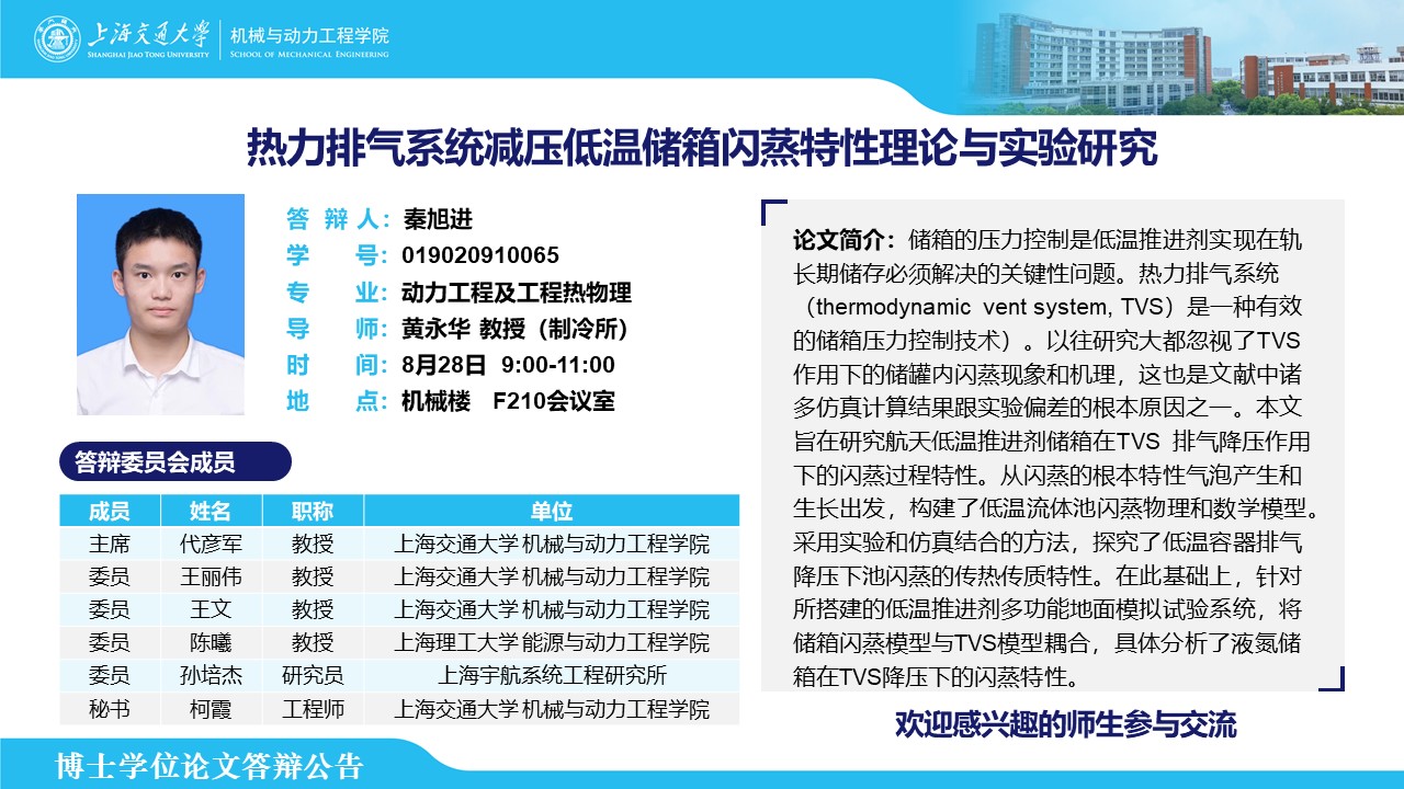 答辩人:秦旭进| 导师:黄永华 | 时间:8月28日 9:00 – 11:00 | 地点:机械楼 F210会议室