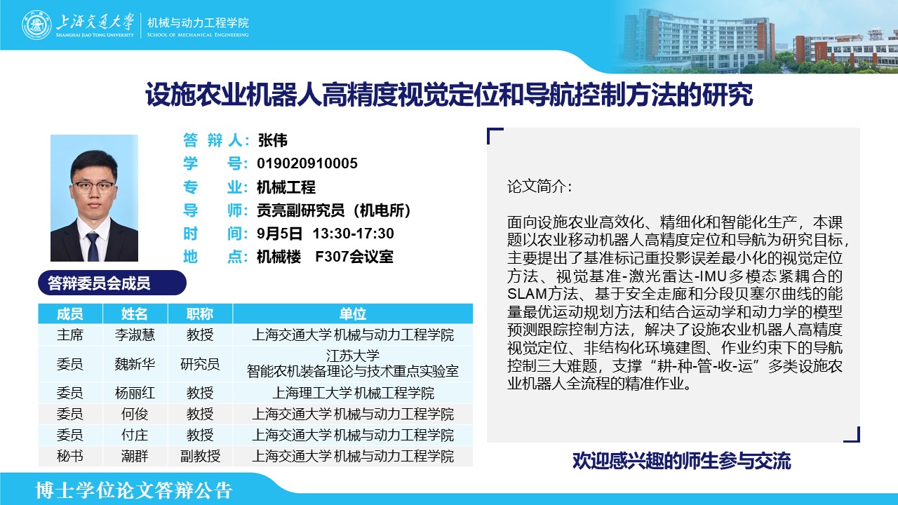 答辩人:张伟| 导师:贡亮 | 时间:9月5日 13:30 – 17:30 | 地点:机械楼 F307会议室
