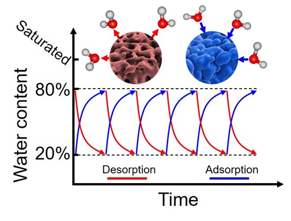 空气取水技术是缓解淡水资源短缺的有效途径。近年来,太阳能驱动的吸附式空气取水技术因其高适应性和低成本等优势得到广泛关注,有望在任何时间和地点生产符合安全饮水标准的清洁水。目前的研究开发了MOF、碳纳米材料、水凝胶等众多吸附材料,为了提高吸附材料的吸湿能力,无一例外地选择了与吸湿盐的复合,其中水凝胶因独特的肿胀性能而具有良好的储水能力,成为盐负载的首选基质。然而,传统水凝胶基质受到盐析效应的影响,聚合物的水溶性因盐的存在而降低。盐析效应导致聚合物链聚集,抑制了水凝胶的肿胀,从而限制了它们的水转移、水储存能力,导致盐偏聚、泄露,最终限制了水蒸气的吸附能力。
