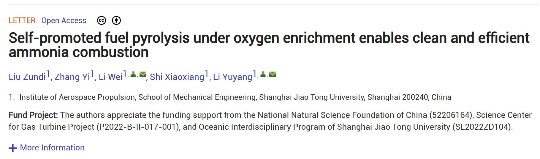 近日,航空动力研究所李玉阳教授团队在国际能源领域前沿期刊The Innovation Energy上发表了题为“Self-promoted fuel pyrolysis under oxygen enrichment enables clean and efficient ammonia combustion”的论文,发现增氧燃烧能够显著促进新型零碳燃料氨在火焰中的自驱动裂解,从而突破氨燃烧活性和污染排放同步调控挑战。航空动力研究所博士研究生刘尊迪为论文第一作者,李玉阳教授和李伟助理教授为共同通讯作者。