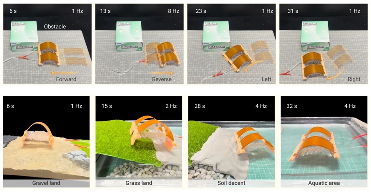 仿生脊椎软体机器人执行避障及水陆两栖多地形任务